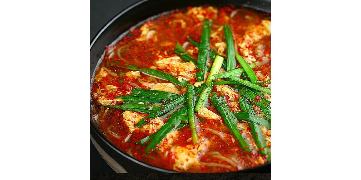 唐辛子がうまみに変わる不思議なスープ。麺は異色の韓国麺。今までに無い食感と弾力。