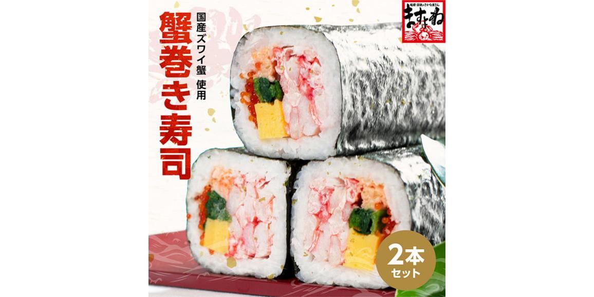 【お取り寄せ可】国産紅ずわい蟹使用!特大 高級蟹巻き寿司 2本セット 【送料無料】2,980円 ※在庫限り!早割価格4/30 12:00まで┃越前かに問屋 ますよね