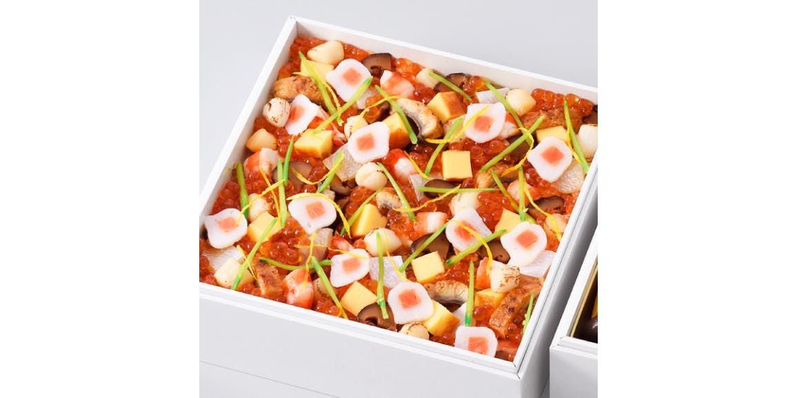年に一度の母の日に、料理の華を添えて料理人が手間ひまかけて、種類多く盛り込んだ料理盛合せと彩り美しいちらし寿司。母の日のお祝いらしく、料理の華を添えて彩り豊かに。