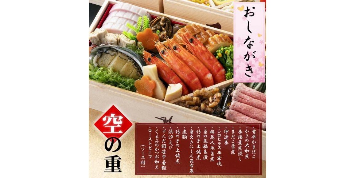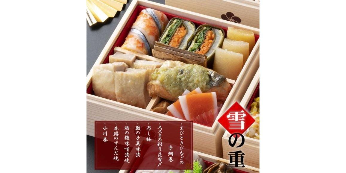 石川県能登食材をふんだんに使った豪華な香箱ガニやアワビを使用し、彩り鮮やかに仕上げた内容は新年にふさわしい華やかな内容になっています。
