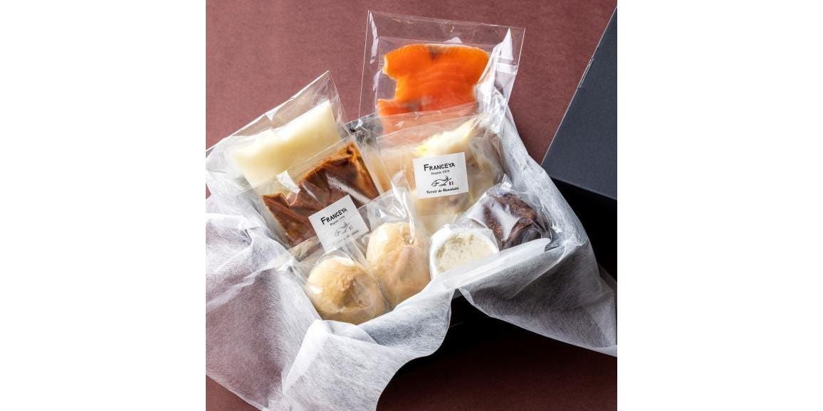 福岡県宗像市にある「FRANCEYA -フランスヤ-」の【フレンチのコースを冷凍で!温めるだけでおうちがレストランに早変わり】(前菜1・前菜2・スープ・魚料理・肉料理・自家製パン・自家製デザート)×2のペアセットをご紹介します。