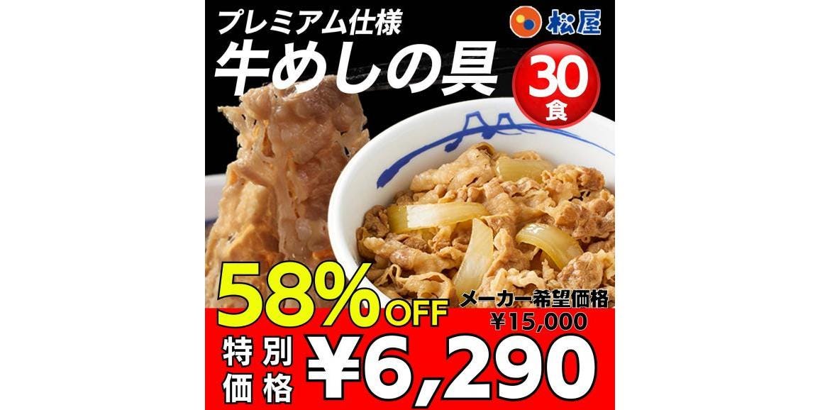 オープニングセール開始!今回のみ!1食なんと210円!?あの松屋の牛めしの具30食15,000円が6,290円送料無料で登場!