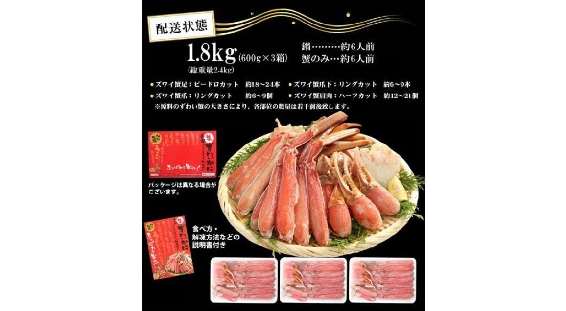 ※ズワイ蟹の大きさにより数量は前後します。