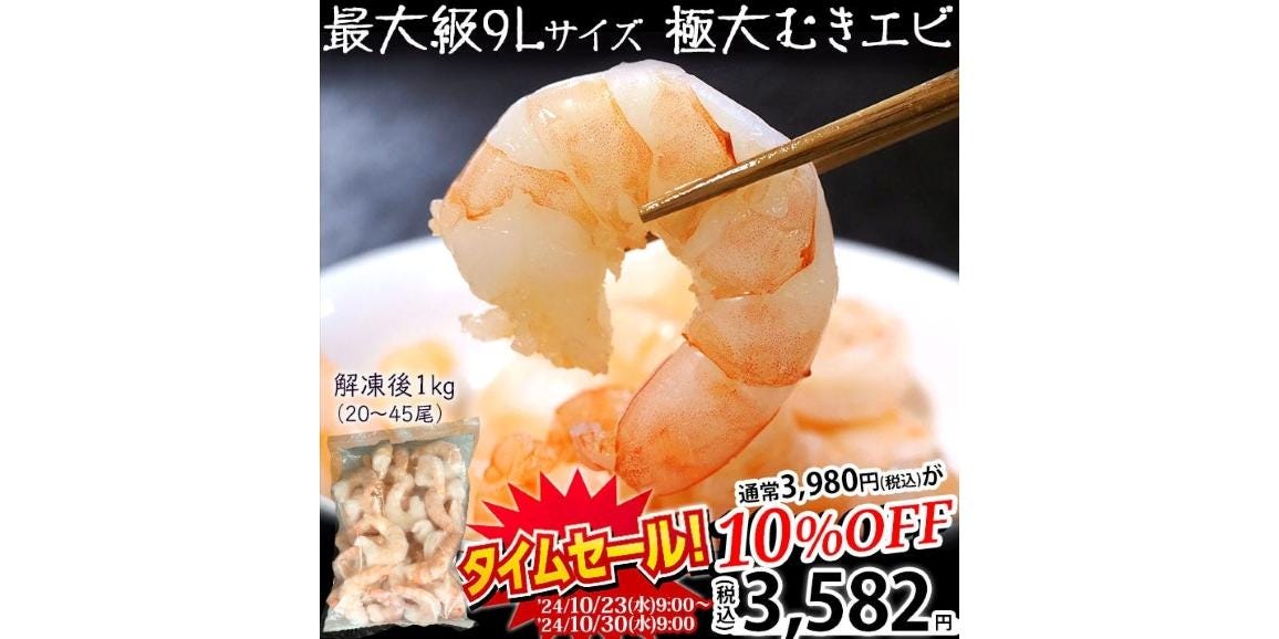 最大級9Lサイズ 『極大ムキエビ』 ブラックタイガーがタイムセールで3,582円