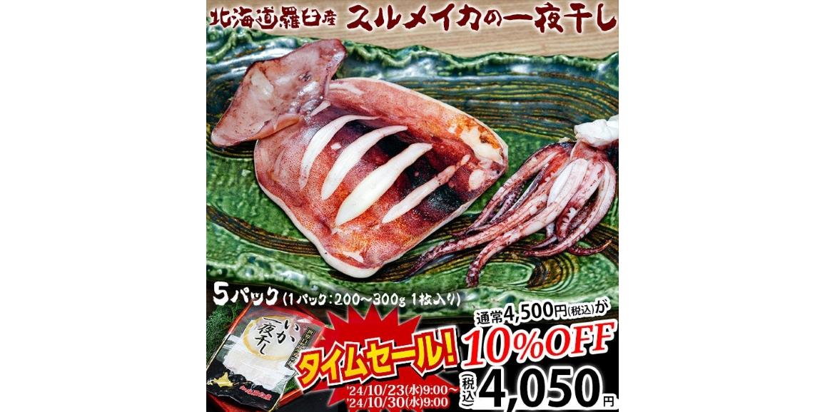 『スルメイカの一夜干し』北海道羅臼産 5パック4,050円で登場!