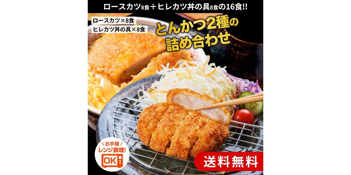52%オフ★とんかつ2種の詰め合わせ16食(ロースカツ8食・ヒレカツ丼8食)