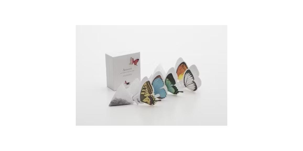 CUPやMUGのふちにかけて楽しむ紅茶「バタフライティー」を2箱詰め合わせにしたギフトボックス。