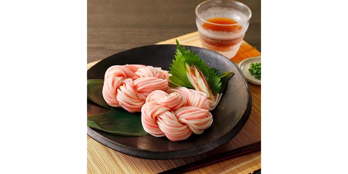 《お祝いごとにも喜ばれる》1本の麺が紅白になった縁起のよい合わせ麺