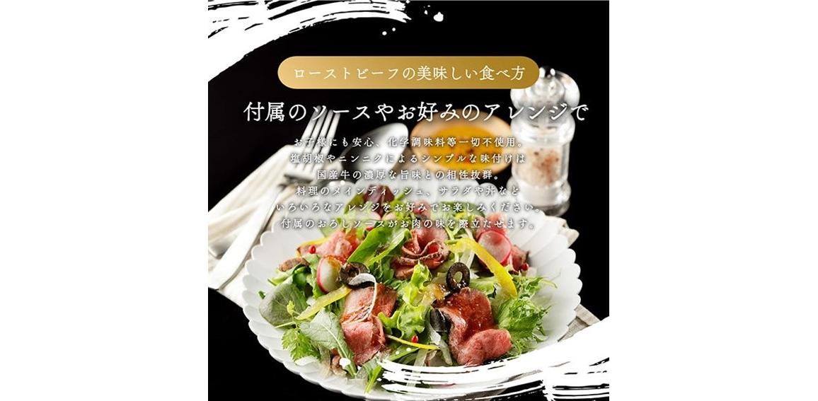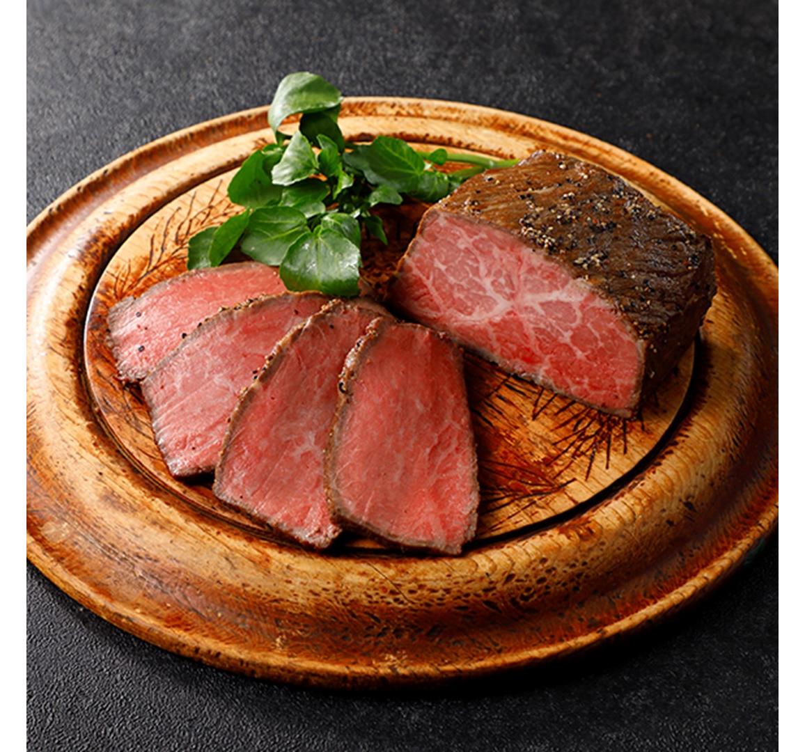ローストビーフ調理に適したもも肉は、熟練の製法により作られる事で国産牛の旨味がギュッととじ込められ、食卓に一花咲かせる贅沢な一品です。