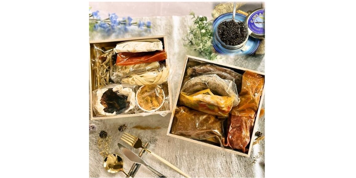 盛り付けるだけの豪華品々+和牛ステーキ+バスクチーズケーキ+キャビア一瓶付【2人前】。