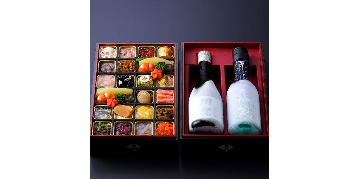 続いて紹介するのは、自分へのご褒美にぴったりなお酒とセットのおせちです。(1段おせち全26品2人前)