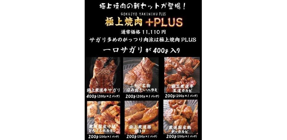 ハラミ・サガリが多く入った新セット極上焼肉+PLUS(ごくじょうやきにく・ぷらす)