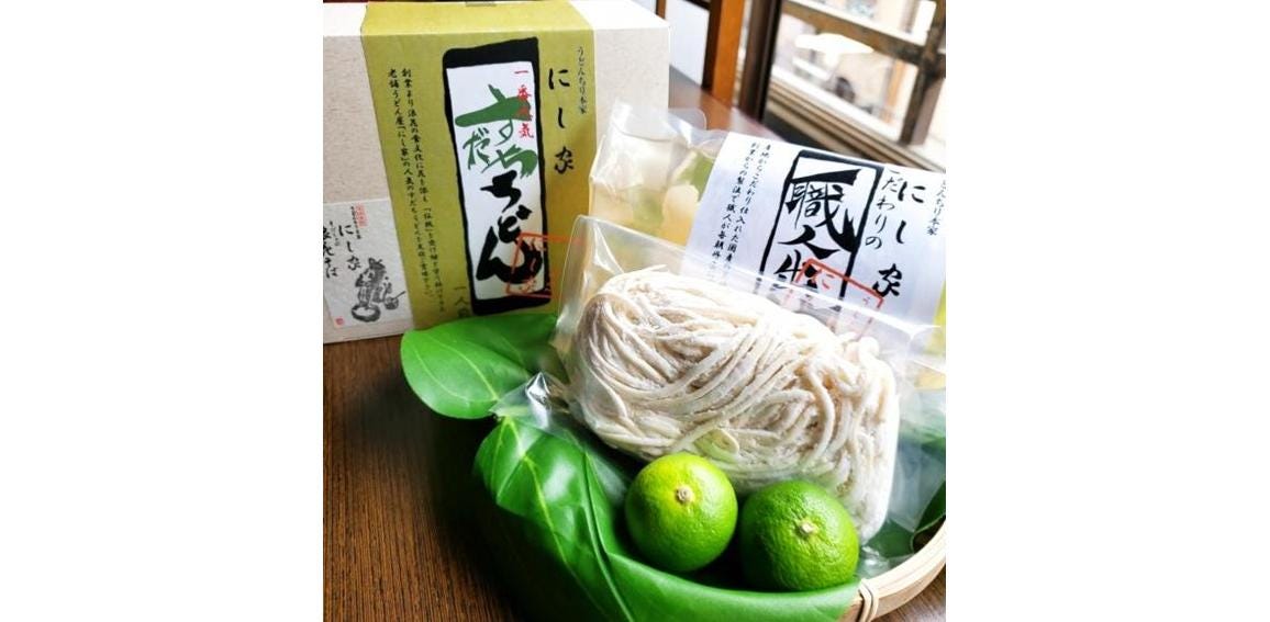 爽やかなすだちが香る!にし家の人気メニュー「すだちうどん2食セット」