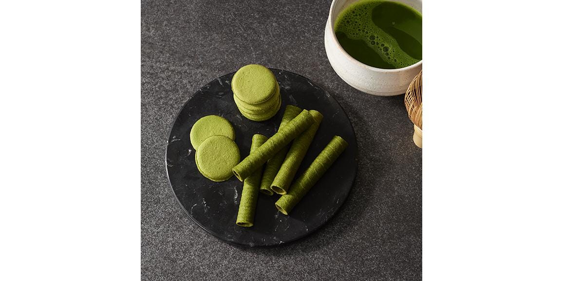 「お濃い抹茶ラングドシャ」には、小さなサイズでも濃厚な抹茶を感じられるように、特別配合したお濃い抹茶をふんだんに使用しています。サンドした特製の抹茶チョコレートは滑らかな仕上がりで、抹茶の濃厚さは格別。