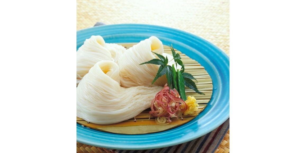 日本三大素麺のひとつ「三輪そうめん」です。三輪そうめんは手延べ素麺発祥とされており、約1200年の歴史がある由緒ある伝統食品です。