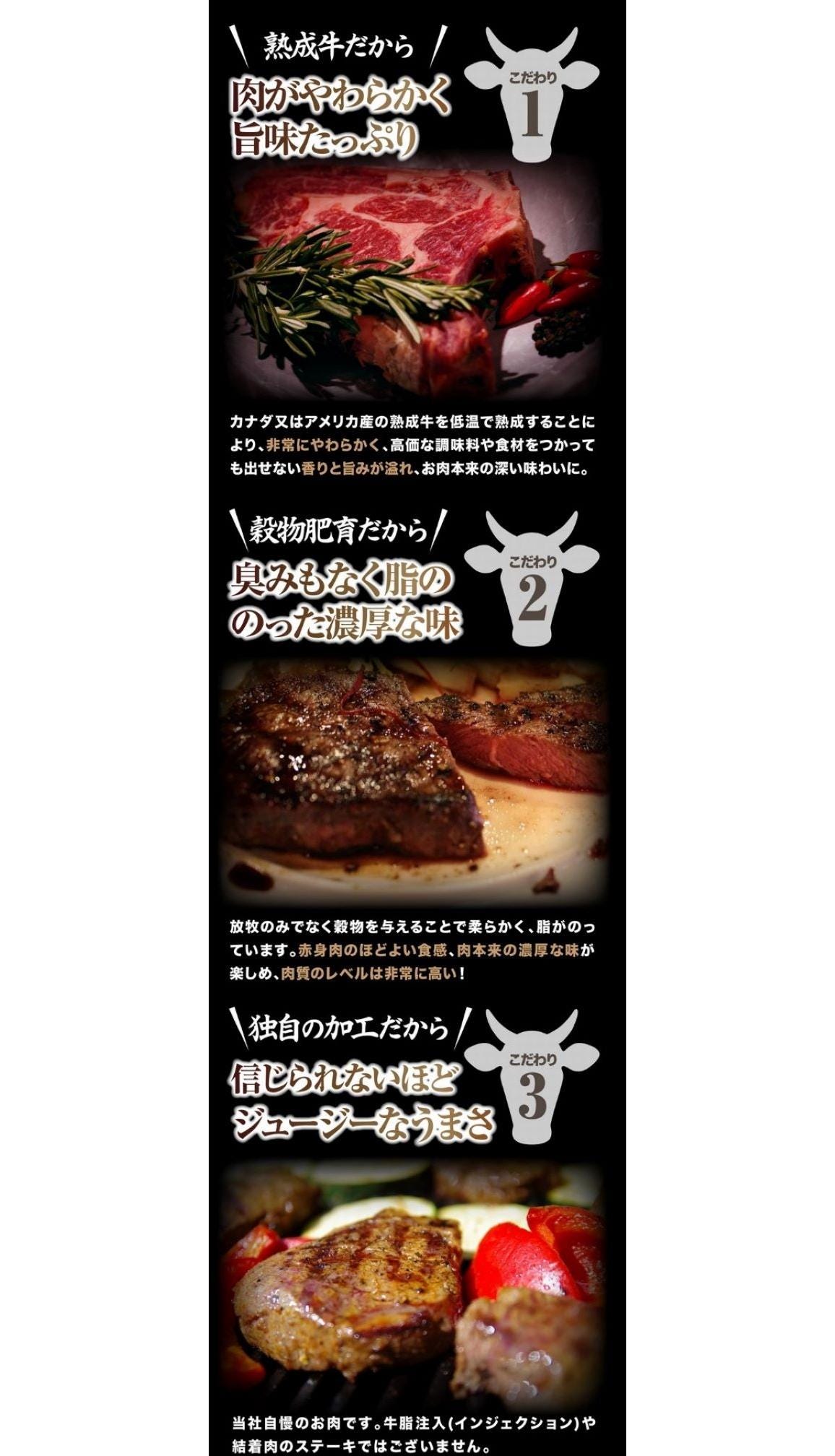 カナダ又はアメリカ産の熟成牛を使っているので、香りと旨みがたっぷり濃厚です。