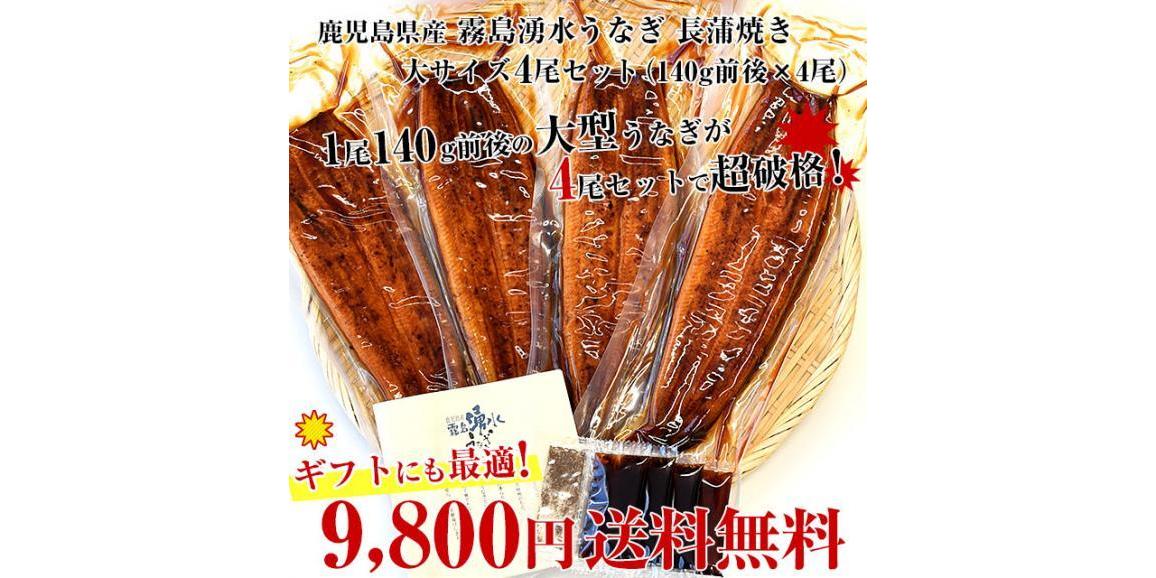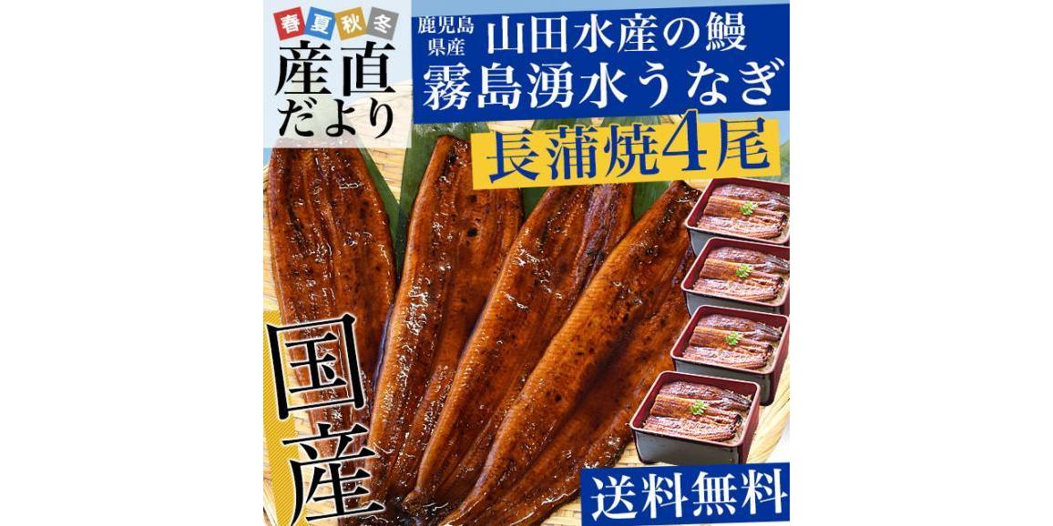 鹿児島県志布志産 山田水産 霧島湧水うなぎ 長蒲焼き 大サイズ4尾セット(140g前後×4尾)