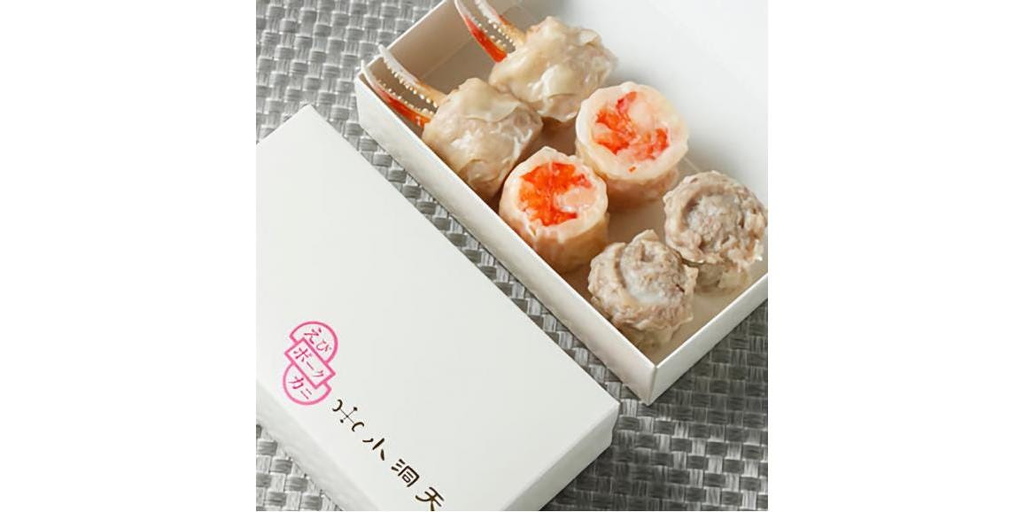 小洞天の看板商品「ポークシュウマイ」と「えびシュウマイ」と「カニシュウマイ」