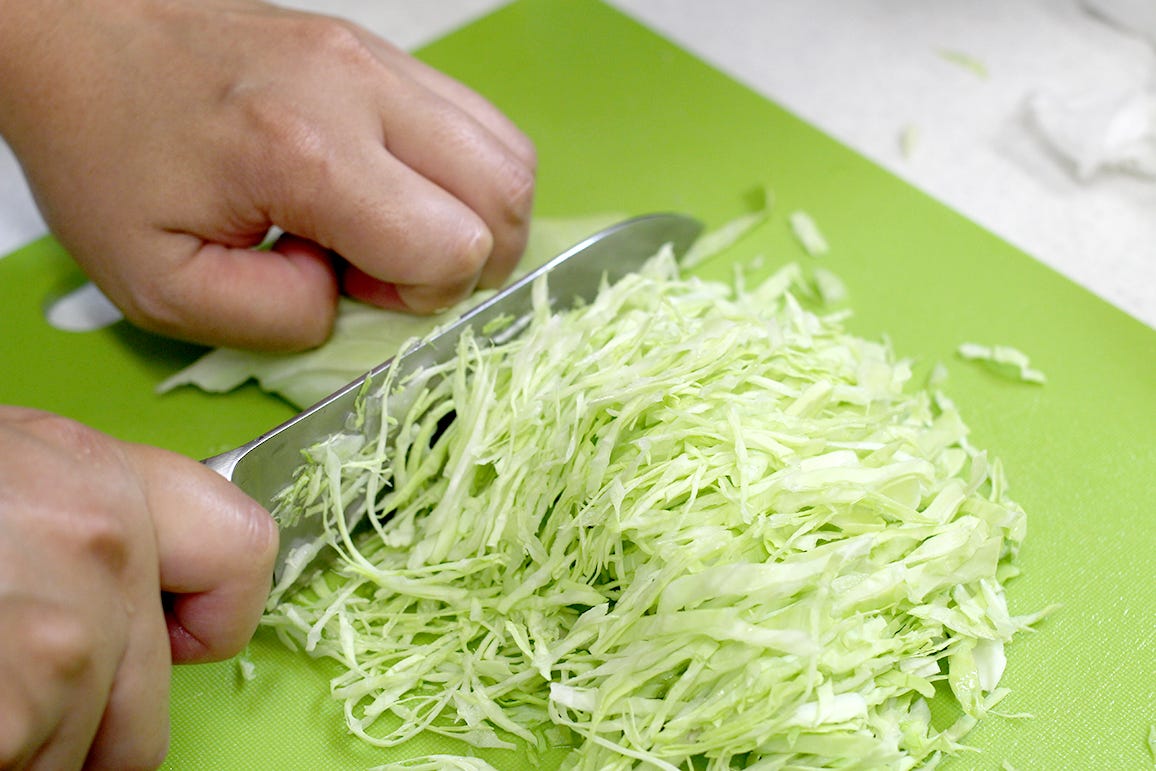①キャベツを千切りにする
