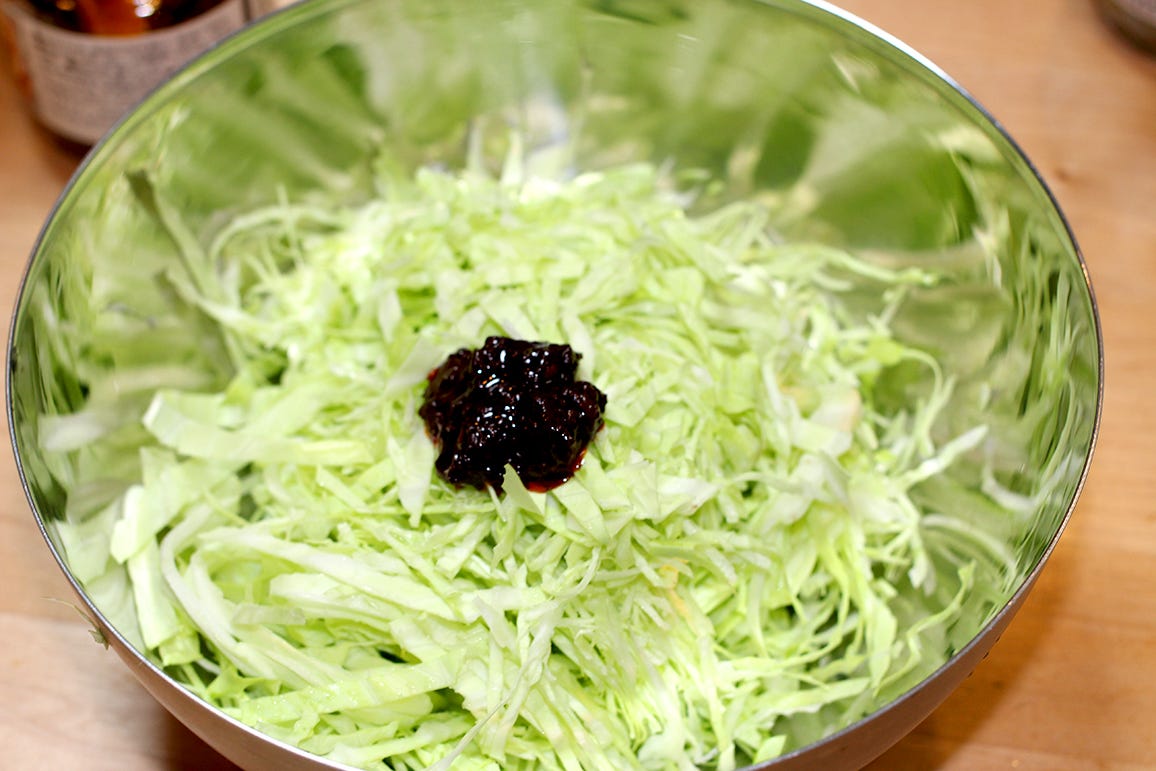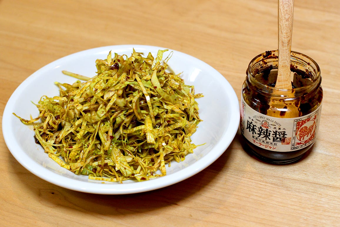 レシピというほどの手順もなく、キャベツの千切りにして、麻辣醤とまぜるだけ。たったこれだけ。