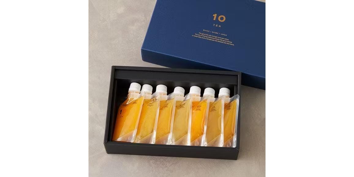 愛媛県松山と東京都銀座に直営店を構える、みかんジュース専門店「10FACTORY」の贅沢ゼリーギフトセットです。愛媛産のみかんから厳選した7種類の果汁100%ストレートジュースを使用し、みかん本来の甘味と酸味をそのまま楽しめます。口の中でとろけるなめらかな食感が特徴で、冷凍すればシャーベットのような爽やかな味わいに変化。幅広い年齢層に喜ばれ、贈り物やご自宅用にもぴったりです。美と健康に敏感な大人世代にもおすすめできる、素材にこだわったヘルシーな逸品です。