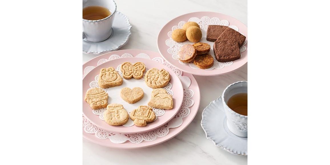 鯛・富士山・福・財・男の子・女の子・ハート・蝶といった、日本の縁起物や幸せの形を表した定番のバタークッキー「ヌーヴェルジャポネクッキー」。ココア味にザラメを加えた食感が楽しい「ヌーヴェルショコラ」。きなこの風味が広がるスノーボール「Love石」。アーモンドとキャラメルが香ばしいフロランタン「太陽のオーブ」の4種類が楽しめます。