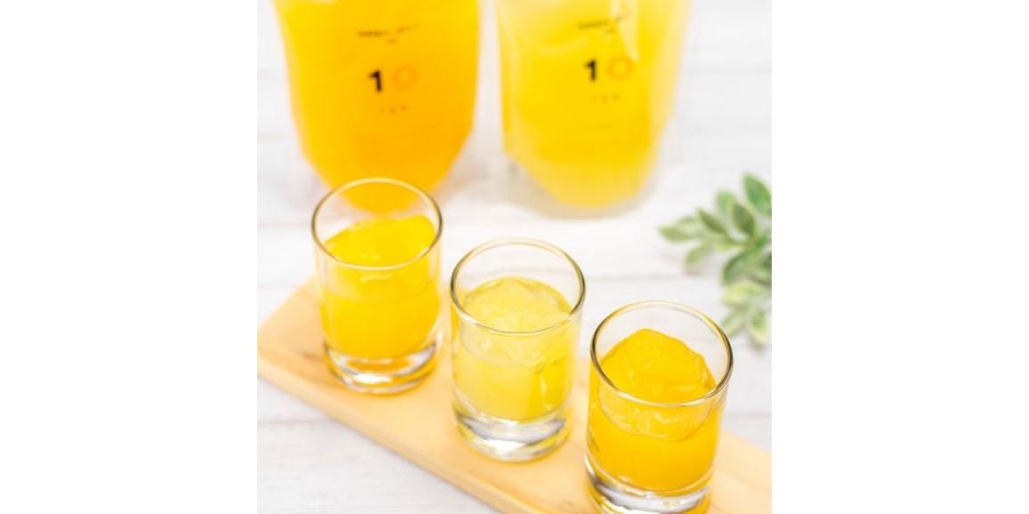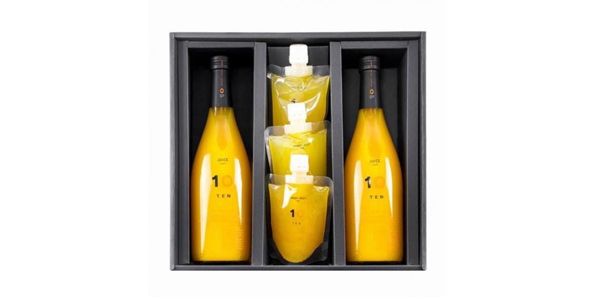 愛媛県産みかんの魅力を詰め込んだ「10FACTORY」の100%ストレートジュースとみかんゼリー。外皮の雑味を避けて丁寧に搾ったジュースは、濃縮還元では味わえない果実本来の甘みと香りが広がります。