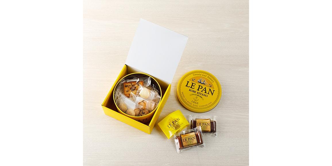 神戸開港150年を記念して作られたル・パンオリジナルボックスは、まるで宝石箱。港をイメージした船の柄が特徴の、どこか懐かしい丸缶に瀬戸内レモンの皮のコンフィをたっぷりと使用したオリジナルレモンケーキやフィナンシェなどル・パンのパティシエ自慢のアイテムを詰め込みました。