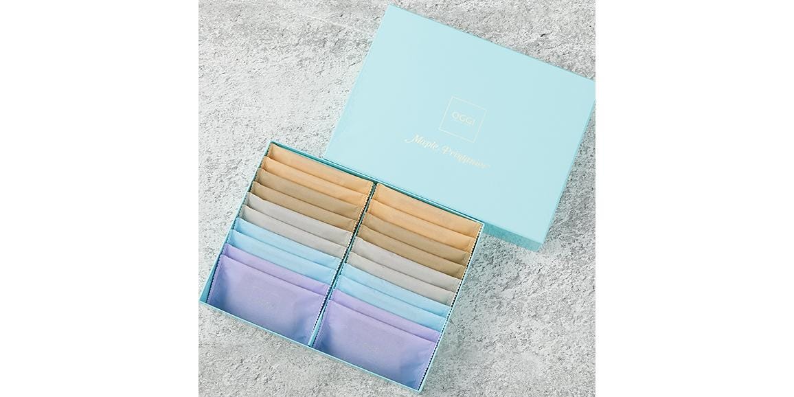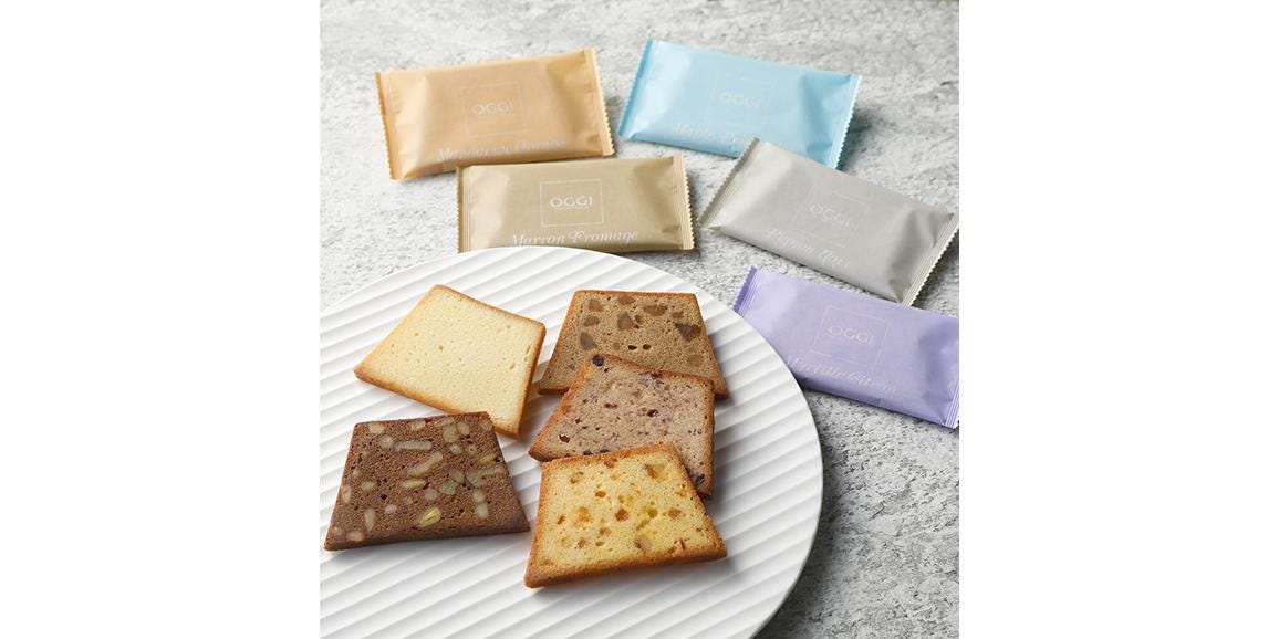 そのひとつの「メープルプランタニエ」は、限界まで薄くした5種類の味が楽しめ、体にやさしいメープルシロップを使ったオッジ自慢のスライスケーキです。薄くても実が詰まっているからしっとり濃厚、ひと切れで大満足で味わい豊かです。淡い5色に彩られた「個包装」もお洒落ですね。1箱でメープル、ブルーベリー、松の実、マロン、マンダリンオレンジの個性豊かな5つの味がお楽しみいただけます。ギフトにもおすすめです。