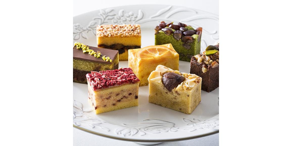フルーツやナッツ、チョコレートなどで飾られた華やかなパウンドケーキはまるで生ケーキのよう。しっとりとした滑らかな食感は、これまでの焼き菓子のイメージを大きく変えてくれるはずですよ。