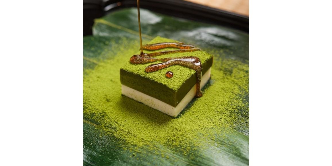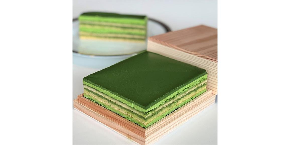 老舗茶舗「福寿園」新ブランド「花茶人」のアーモンドの生地と抹茶クリームを九層に重ねた究極のスイーツ!