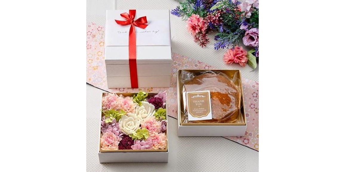 母の日2022|プリザーブドフラワーと窯焼きバターかすてら 母の日セット