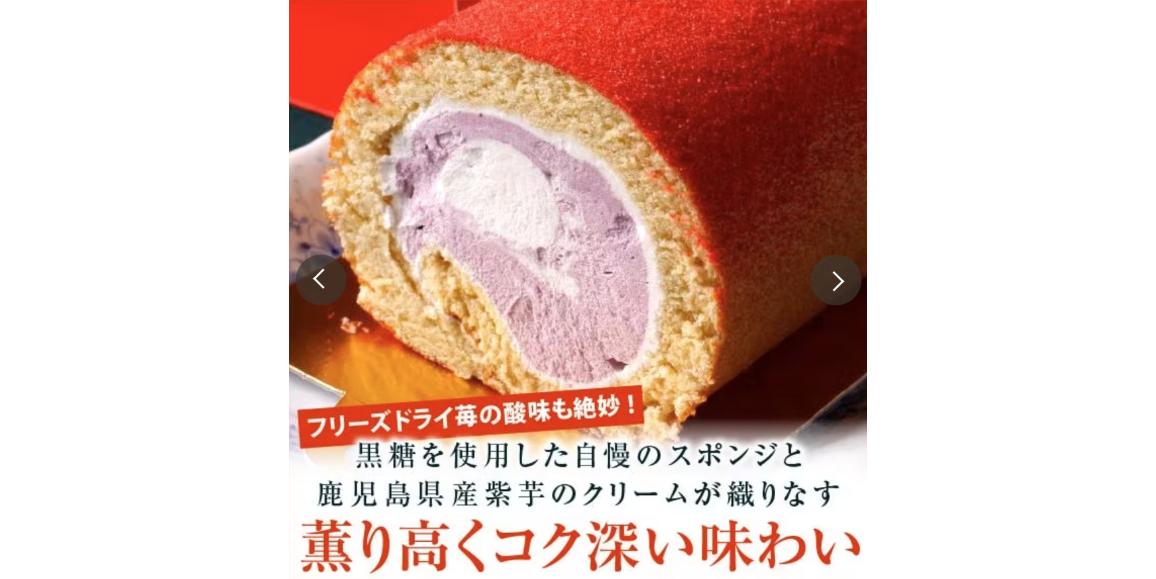 紫イモのクリームと黒糖スポンジが織りなす薫り高くコク深い味わいのロールケーキ