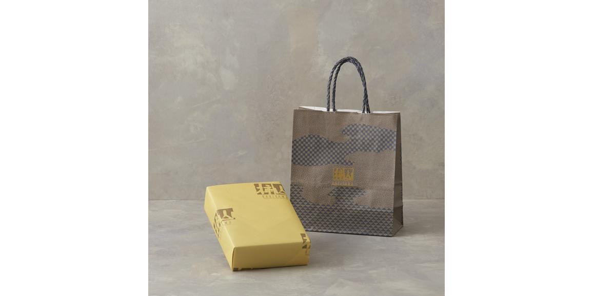 その新大正もち米の粒の姿をそっくり生かして焼き上げた薄焼きおかき「慶長」、アーモンドを丸ごと一粒おかきでくるんだ「慶凰」を硯箱の蒔絵のような美しい化粧缶に詰合せ。