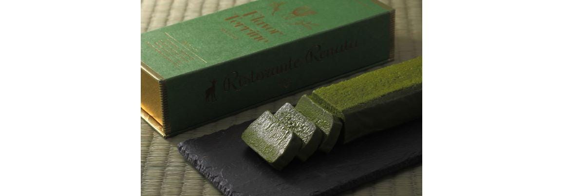 Ristorante Renataが作る「上級抹茶テリーヌ」は、自然由来にこだわり、香料・着色料は使用せずグルテンフリーで作られる「Flavor Terrine」の中でも、「茶道に精通している抹茶好きのお客様を喜ばせたい」という想いで開発を重ね誕生した一品です。