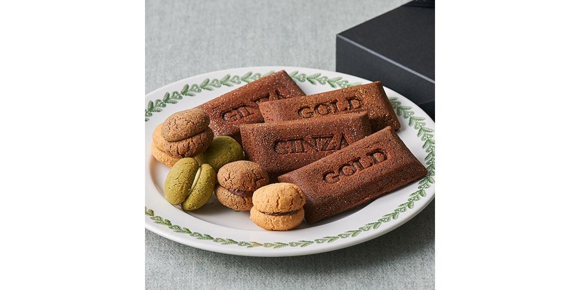 1763年創業。イタリア・トリノの老舗「Bicerin」の、GINZA SIX店限定商品。「GOLD」と「GINZA」の刻印が入り、それぞれに金箔と銀箔をあしらったゴージャスなチョコレートフィナンシェと、イタリア郷土菓子「バーチ・ディ・ダーマ」のセットです。「フィナンシェ」はもともと、金融街への贈り物として使われたことから、金融家・資産家を意味する「ファイナンス」と呼ばれていたと言われている焼き菓子。その由来から、現在でも定番の贈り物として愛されています。また、「バーチ・ディ・ダーマ」は、2019年G20大阪サミット、2016年G7伊勢志摩サミットの2つのサミットで、日本政府より各国の元首に提供された逸品。リッチなひとときを味わえる、豪華なセットになっています。