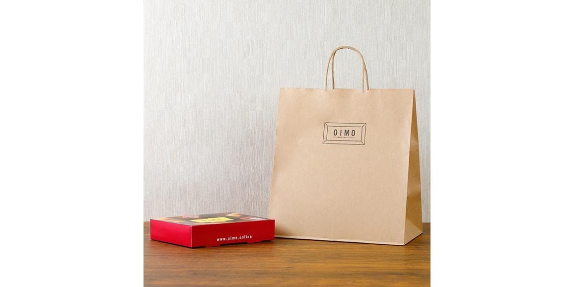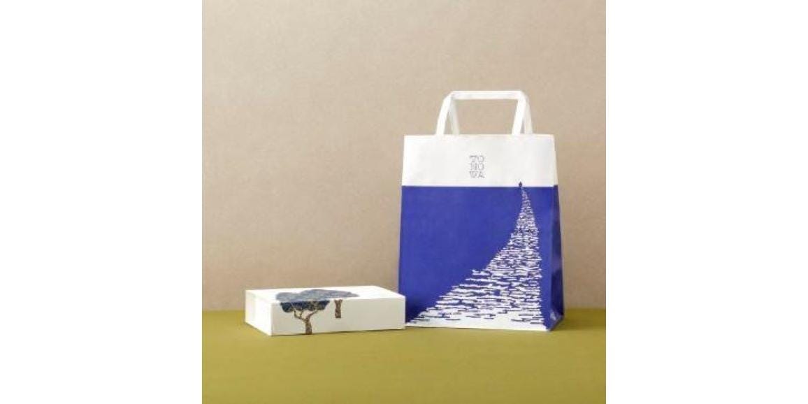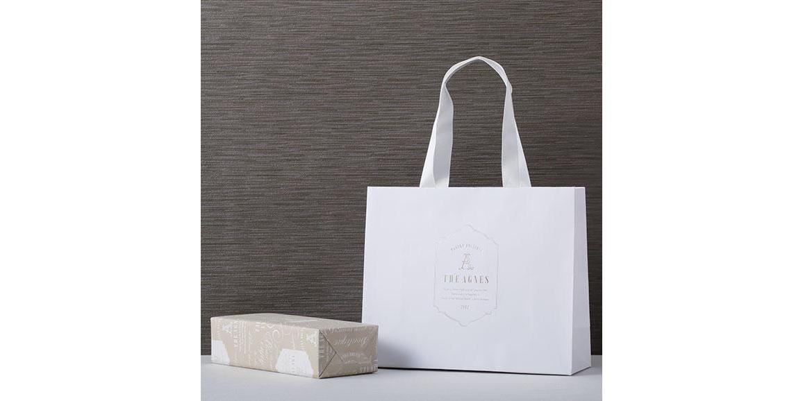 個包装、箱、手提げ袋、商品ロゴのデザインに統一感があり、とってもオシャレ。