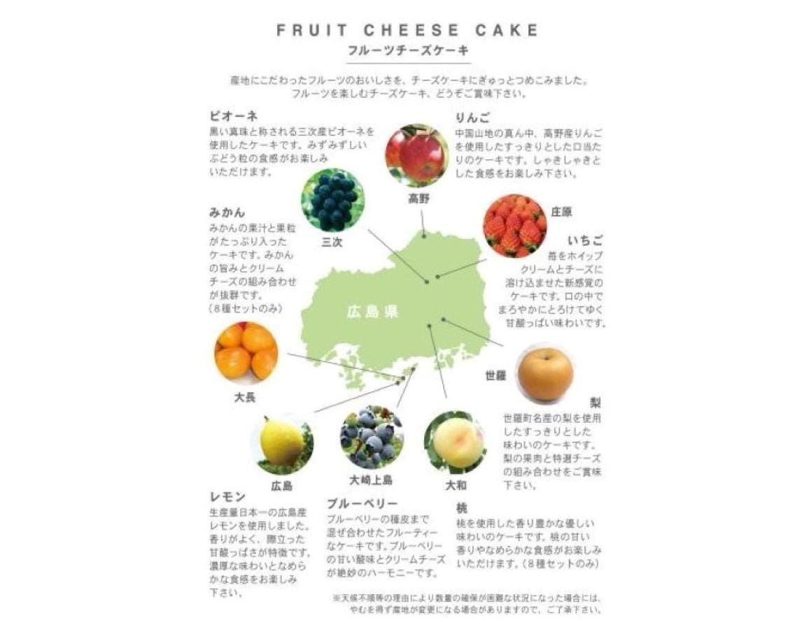 広島県産のフルーツを使用!特選チーズをブレンドし、焼き上げたフルーティーな8種のチーズケーキ!!