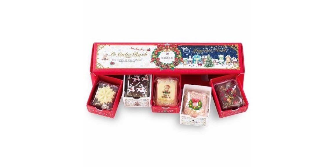 フランス語で「メリークリスマス」を意味するJoyeux Noel (ジョワイユ ノエル)と名付けられたキューブラスクです。一口で食べられるキューブラスクは贈り物にも最適。
