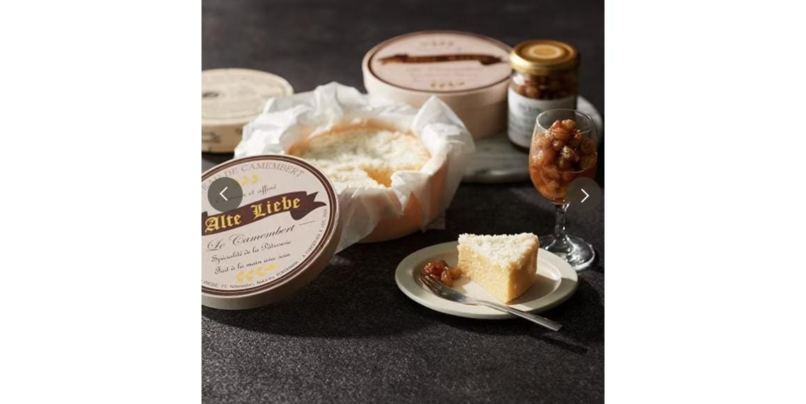 横浜の異国情緒あふれる高級フレンチレストラン「アルテリーベ横浜本店」のシェフが作る、珠玉のチーズケーキ。こだわりの材料とシェフの技術により、クセになる新食感のケーキが誕生しました。伝統的手法で作られた極上のフランス・ノルマンディー産A.O.Pカマンベールチーズを使用し、バターミルクを加えることで、口溶け良く仕上げています。熟成香のあるカマンベールの余韻が口に長く残る、クリーミーな味わいです。セットのレーズンは、薫り高い貴腐ワイン「ソーテルヌ」に漬けたもので、チーズケーキとも相性抜群。カマンベールと貴腐ワインが織り成す、大人のマリアージュを楽しむことができます。チーズケーキが入っている箱は、カマンベールチーズの箱を思わせる、可愛らしいフォルムとデザインが特徴。レーズンにも洗練された包装が施され、シックな印象です。