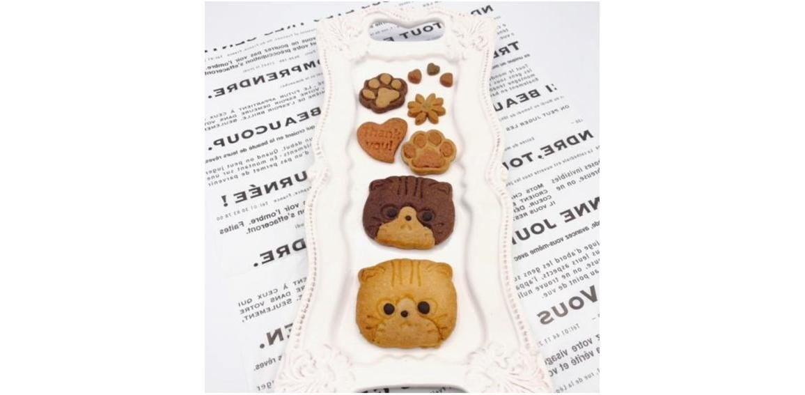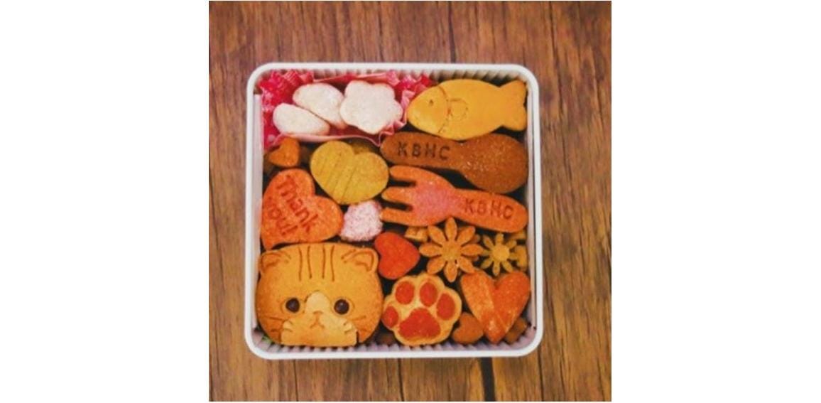 ねこちゃんクッキーをメインに魚、肉球、スプーン、フォーク、お花、ハート等のクッキーを可愛らしく詰めこみました!