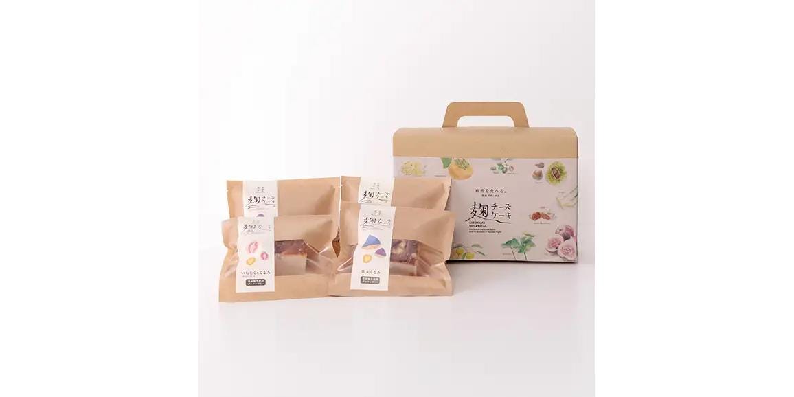 麹の優しい甘さと、しっとりとした食感が楽しめるチーズケーキ「麹チーズケーキ」は、農薬・化学肥料不使用の酒米を主原料に、県内産の平飼い卵や、食塩・安定剤不使用のナチュラルチーズを使用。