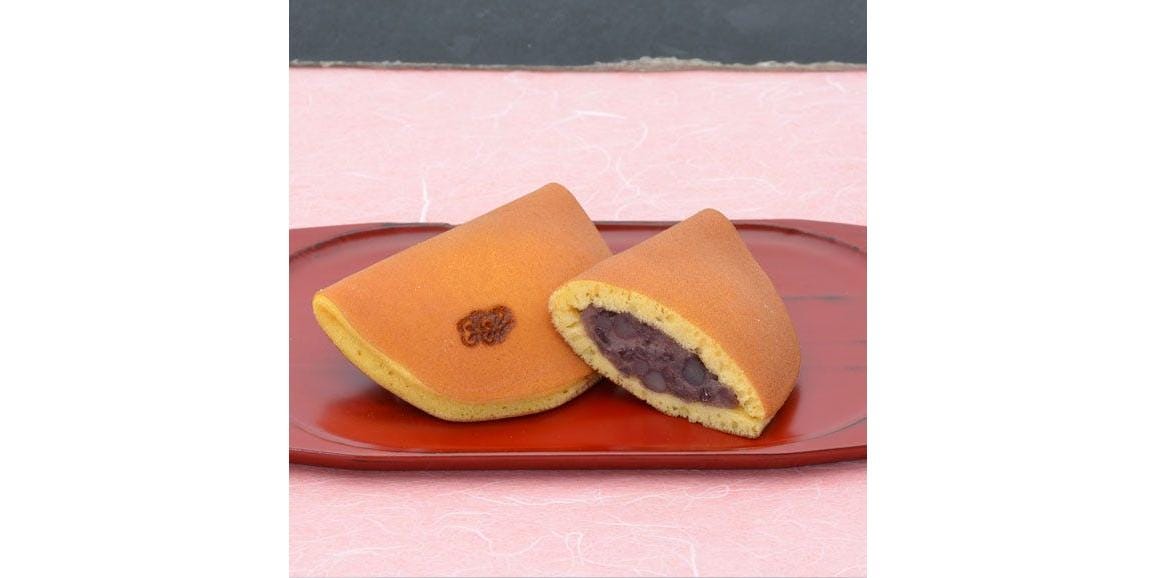 ふわっふわの生地に芳醇な丹波大納言小豆餡がたっぷり詰まった半月型の手焼き「どら焼き」
