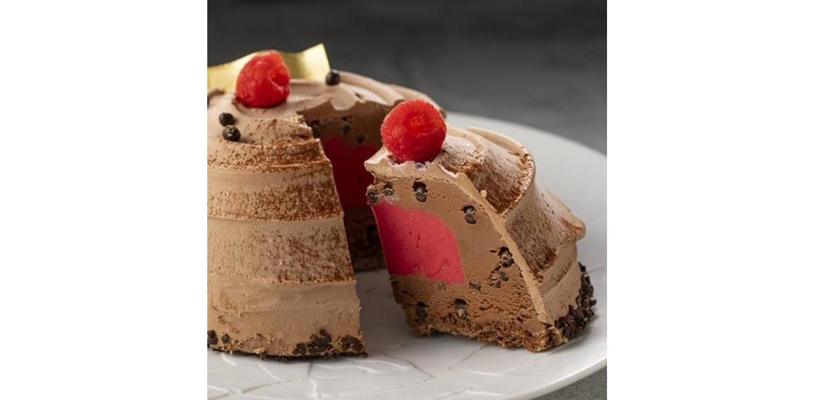 中央の木苺のソルベのほどよい酸味と、チョコトップがアクセントになっています。