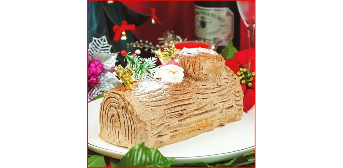 ●新作ケーキ、ブッシュドノエル。ふわっふわのスポンジと、香り豊かなチョコレートの味わいがたまりません。