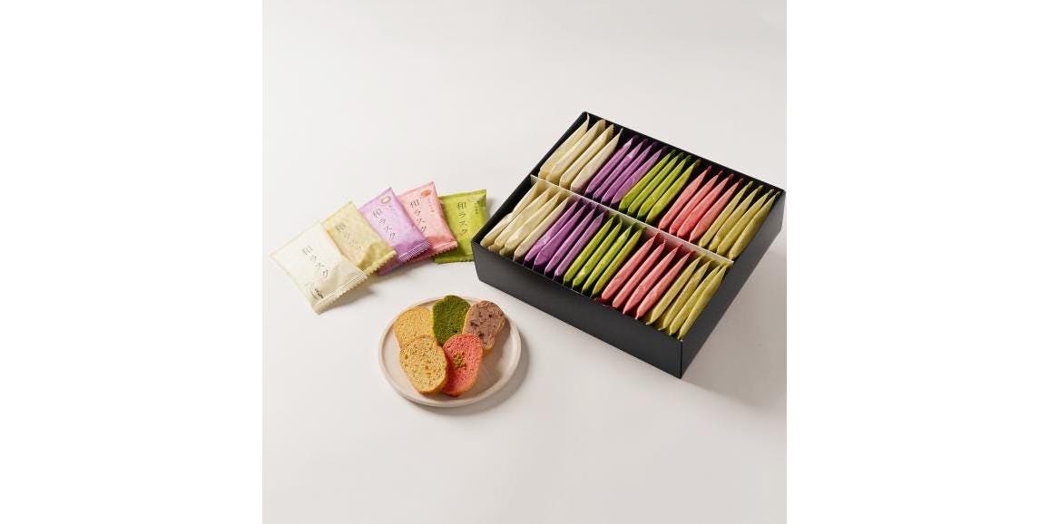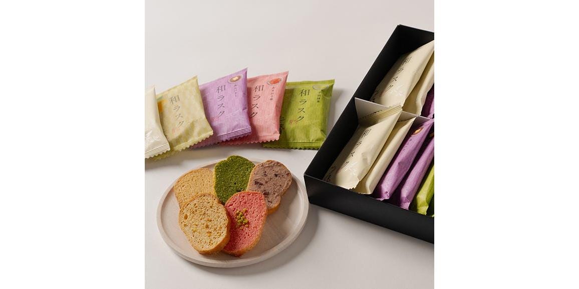詰め合わせでは、発酵バターと和三盆糖の懐かしさを感じる「和ラスク」、ノスタルジックだけど新しい「あんバター」、可憐な赤が心踊る「あまおう苺」、豊かな香りと美しい緑の「宇治抹茶」、出汁の旨みにピリっと辛味のきいた「柚子胡椒」の5つの味が楽しめます。
