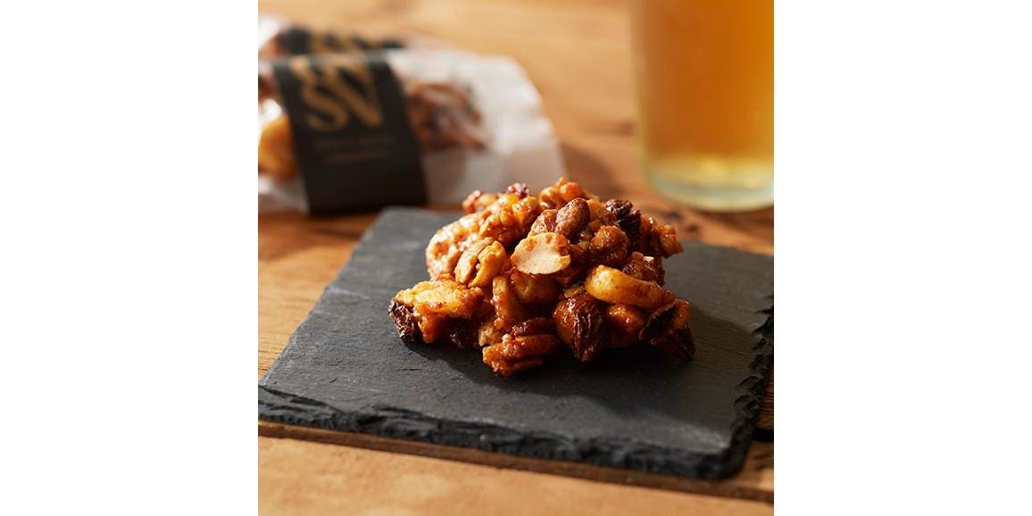 オーガニックシュガーで、ナッツとドライフルーツをキャラメリゼ、七味唐辛子ベースの「特製スパイス」で味付け。