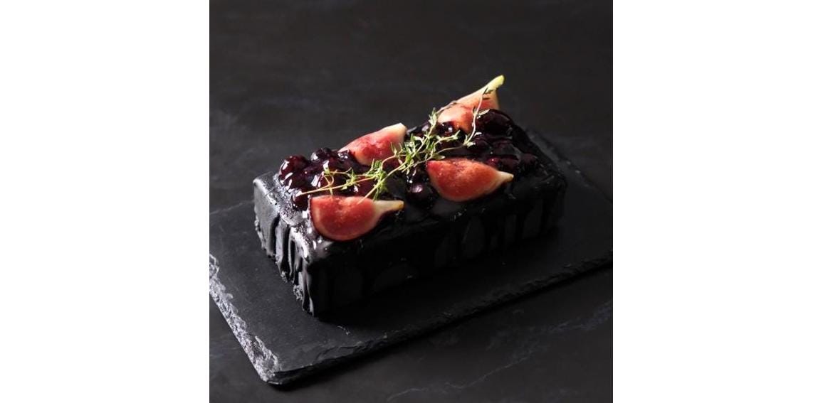 ブラックパリのイメージカラーである黒を模したフルーツをふんだんに使いました。チョコレートを垂らし、見ているだけで食欲を刺激するような宝石のような仕上げにしております。メインのチーズケーキはフロマージュブランを使ったさっぱりとしたレアチーズケーキにしており、どんどん食べ進んでしますような仕上がりになっております。