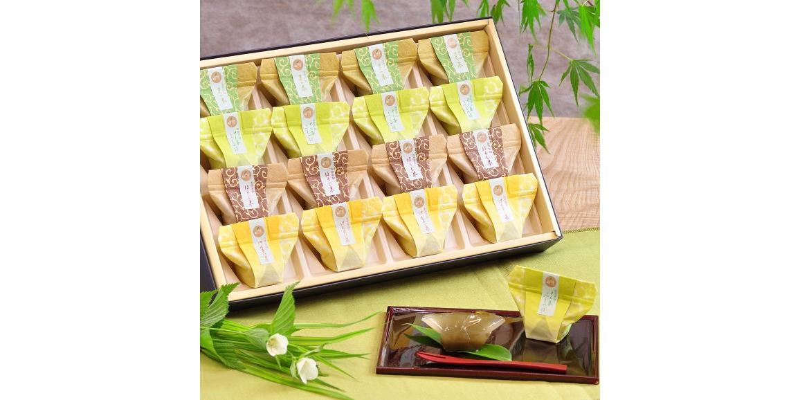 【16個入り】日本茶専門店「茶舗牧ノ原」の4種のお茶を使った上品な冷んやり「お茶葛餅」
