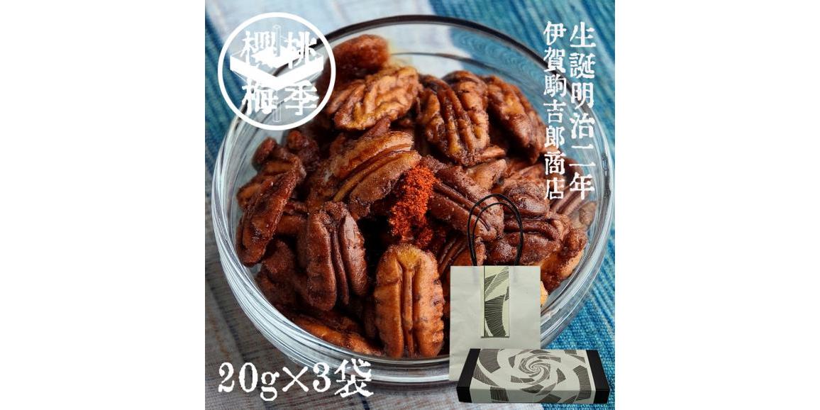 明治13年創業 紀州・和歌山の山本勝之助商店による新鮮な「二味(和歌山産ぶどう山椒と国内唐辛子粉のみ)」で味付けた「二味ナッツ」。